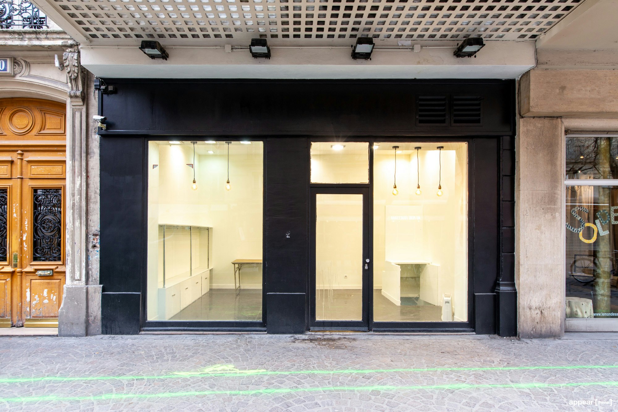 This unique space to rent is on one of the busiest streets in Paris, close to the Forum des Halles. With a black storefront and double windows looking onto the street, it catches the attention of passersby. A newly renovated space, it's the perfect blank canvas for any brand looking to make their idea happen.