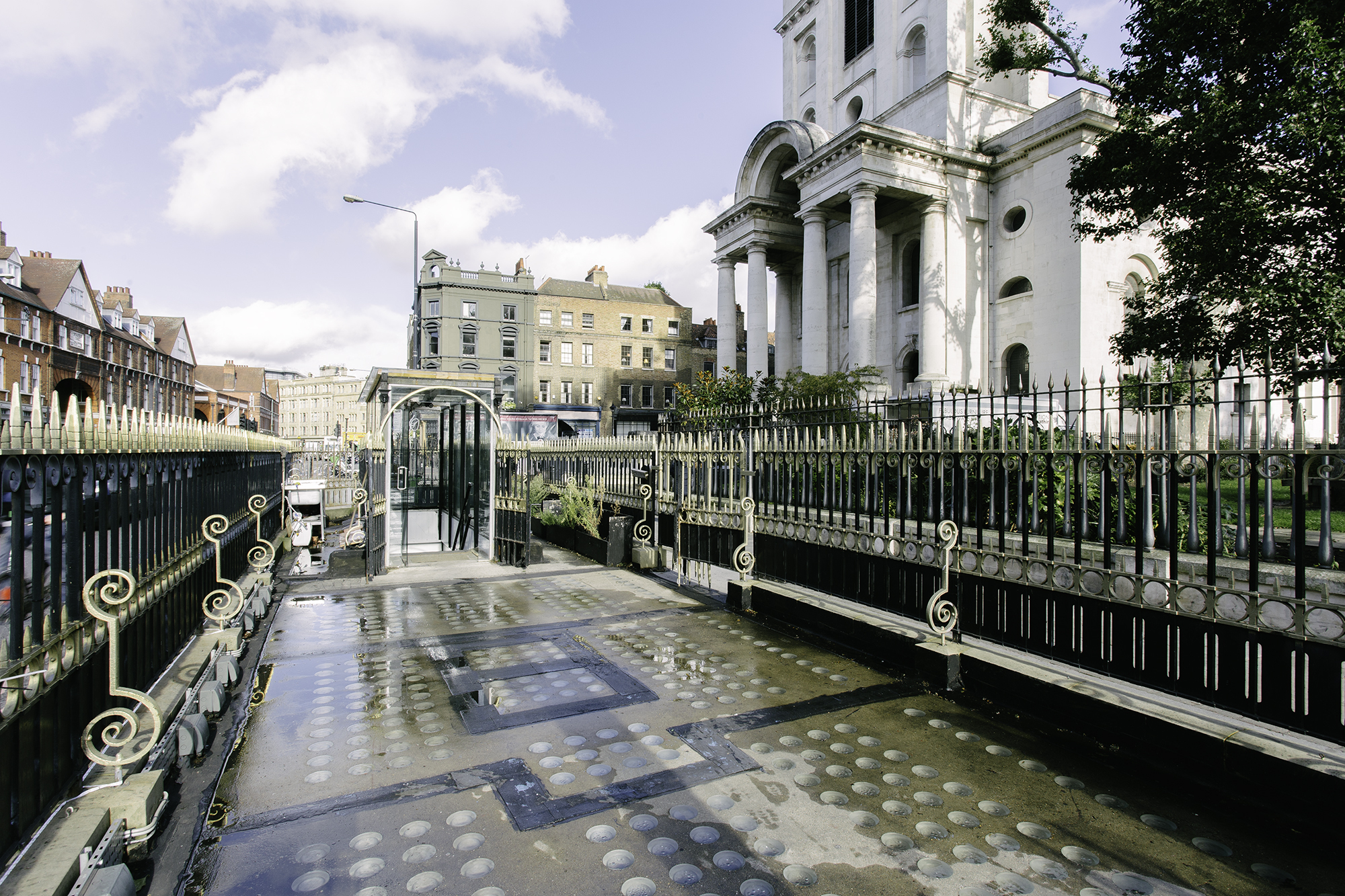 This food market stand on Commercial Street is opposite Spitalfields' high-end boutiques, restaurants and markets, and runs parallel to the bustling Brick Lane. The space for rent consists of a street-level outdoor market pitch with a gated area for serving food, and is above a repurposed basement space with a bar area (once a public bathroom, and then a nightclub), available to rent separately. This market has recently been renovated, so this is the perfect opportunity to establish yourself as one of the very first vendors in the space.